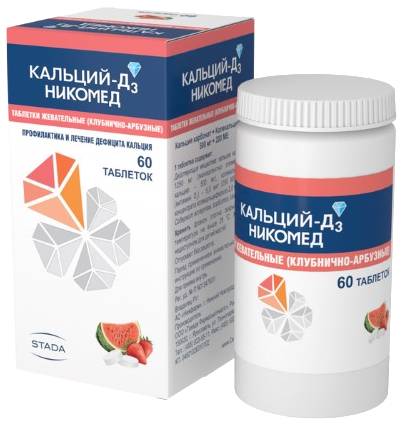 Кальций-Д3 Никомед таб жеват №60 Клубника-арбуз